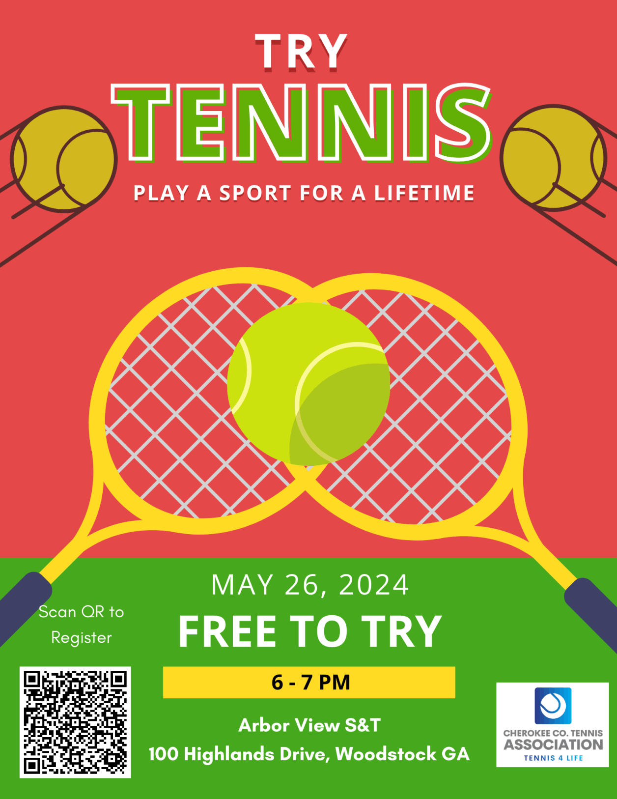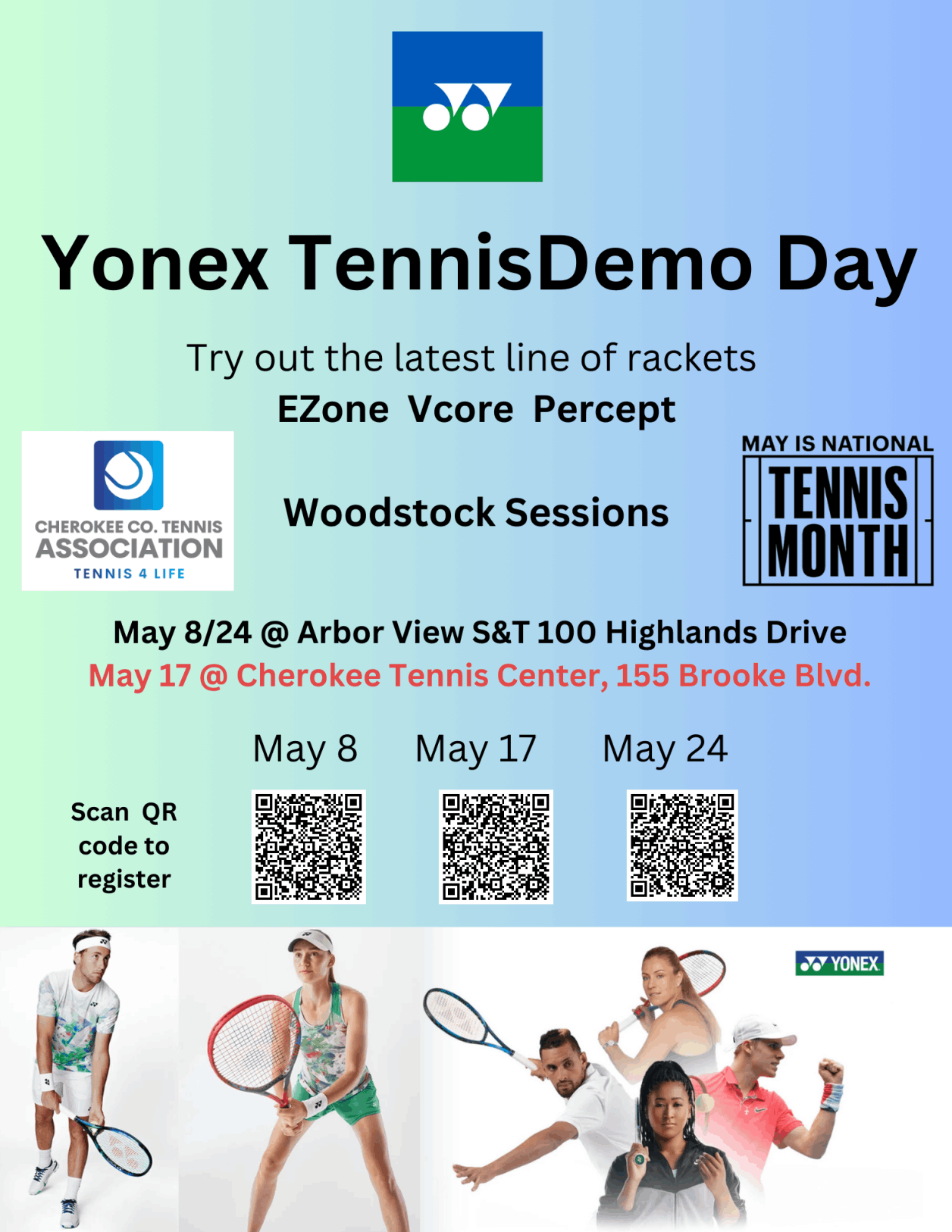 May 17 @ Cherokee Tennis Center, 155 Brooke Blvd. Woodstock.